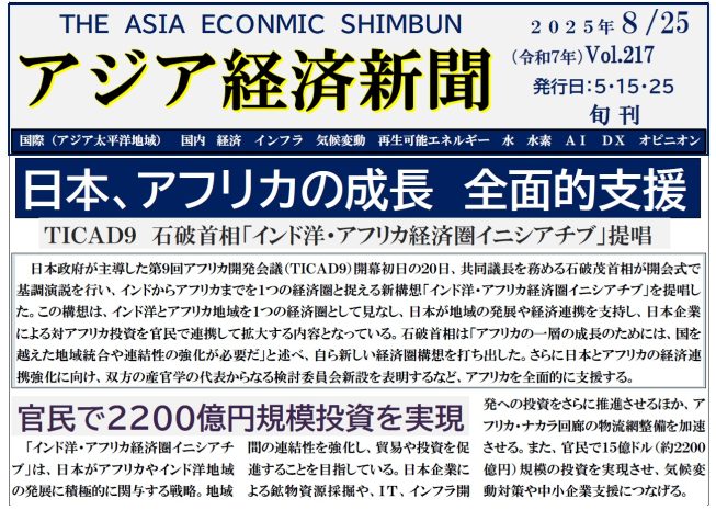 アジア経済新聞Vol.216(1面ダイジェスト版のみ掲載)
